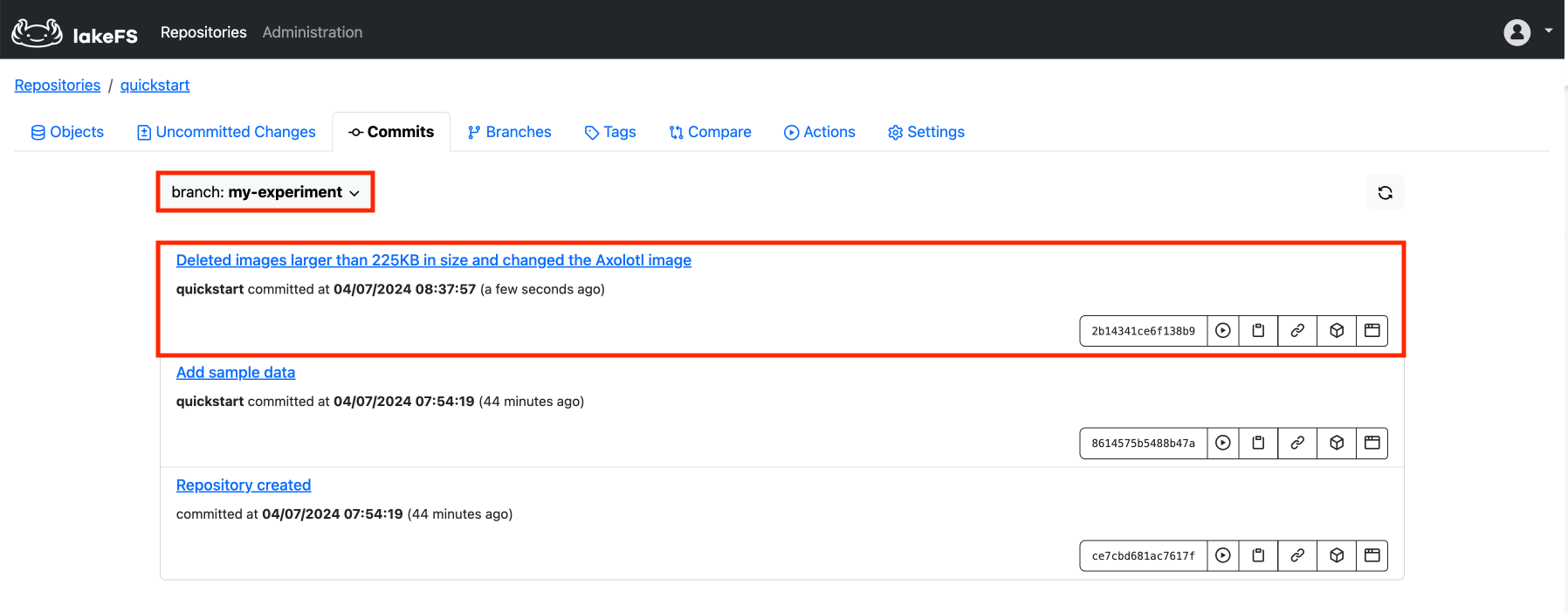 lakefs://quickstart/my-experiment \